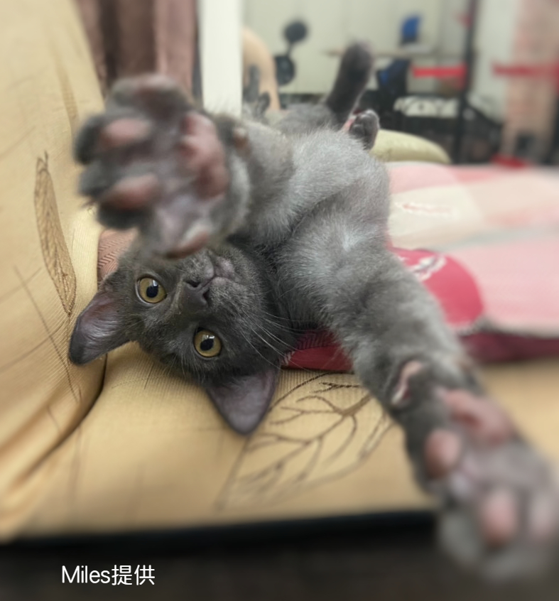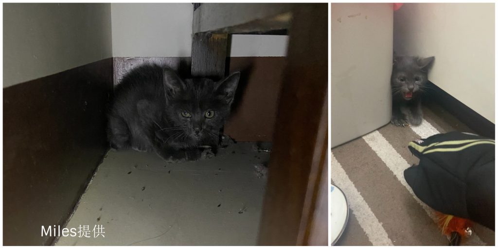 因為之前打工店裡養的是虎斑貓,Miles滿心期待躲在車底的小貓剛好就是小虎斑,只是理想跟現實總是存在著落差,抱回來的是一隻黑色小貓咪。
